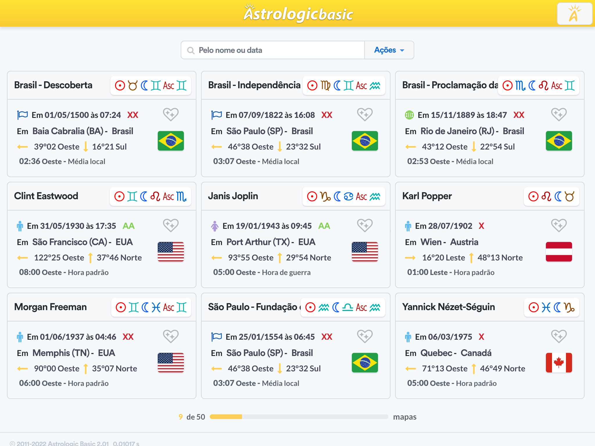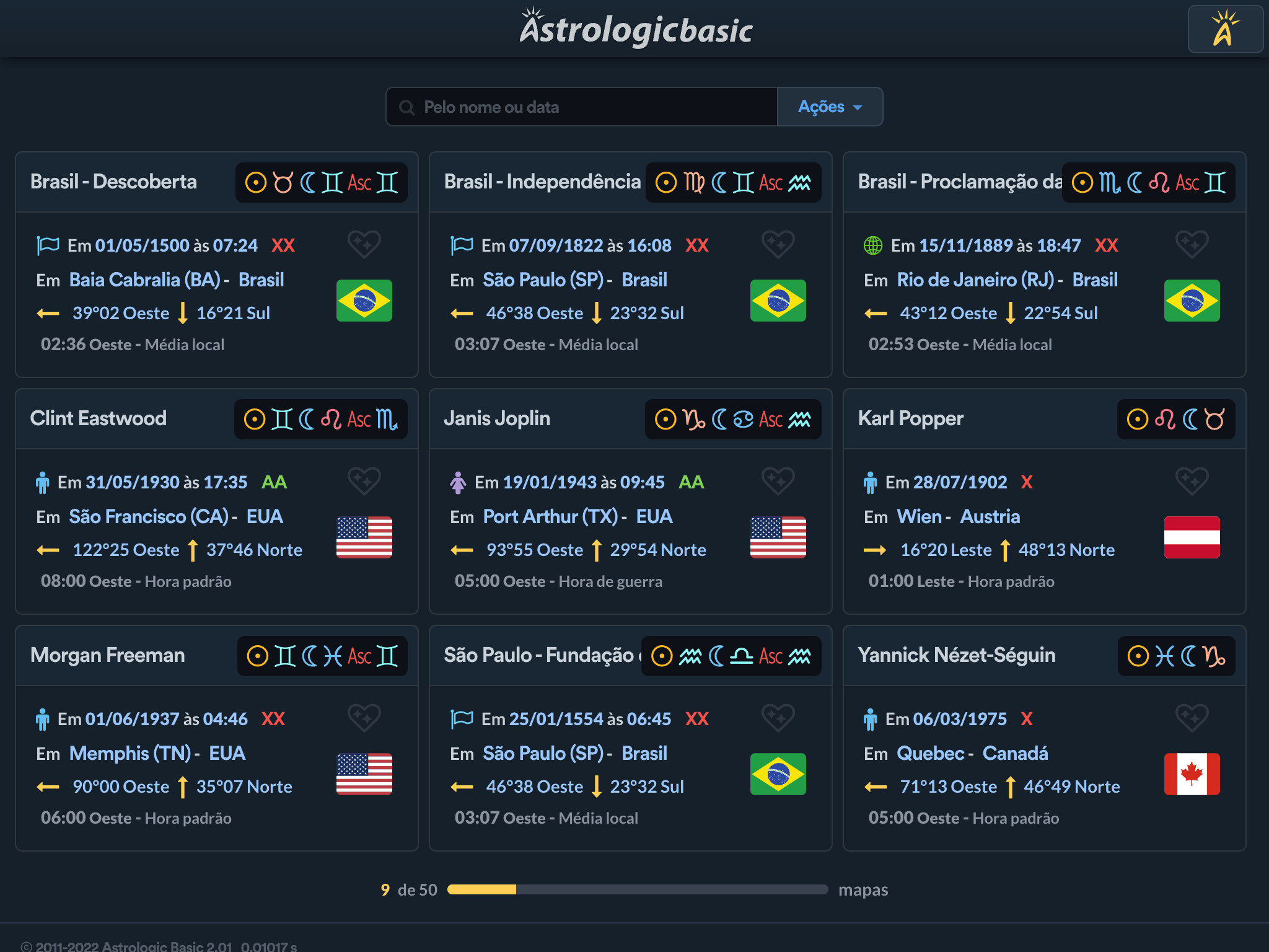 - Configuração base: ABA - Associação Brasileira de Astrologia;