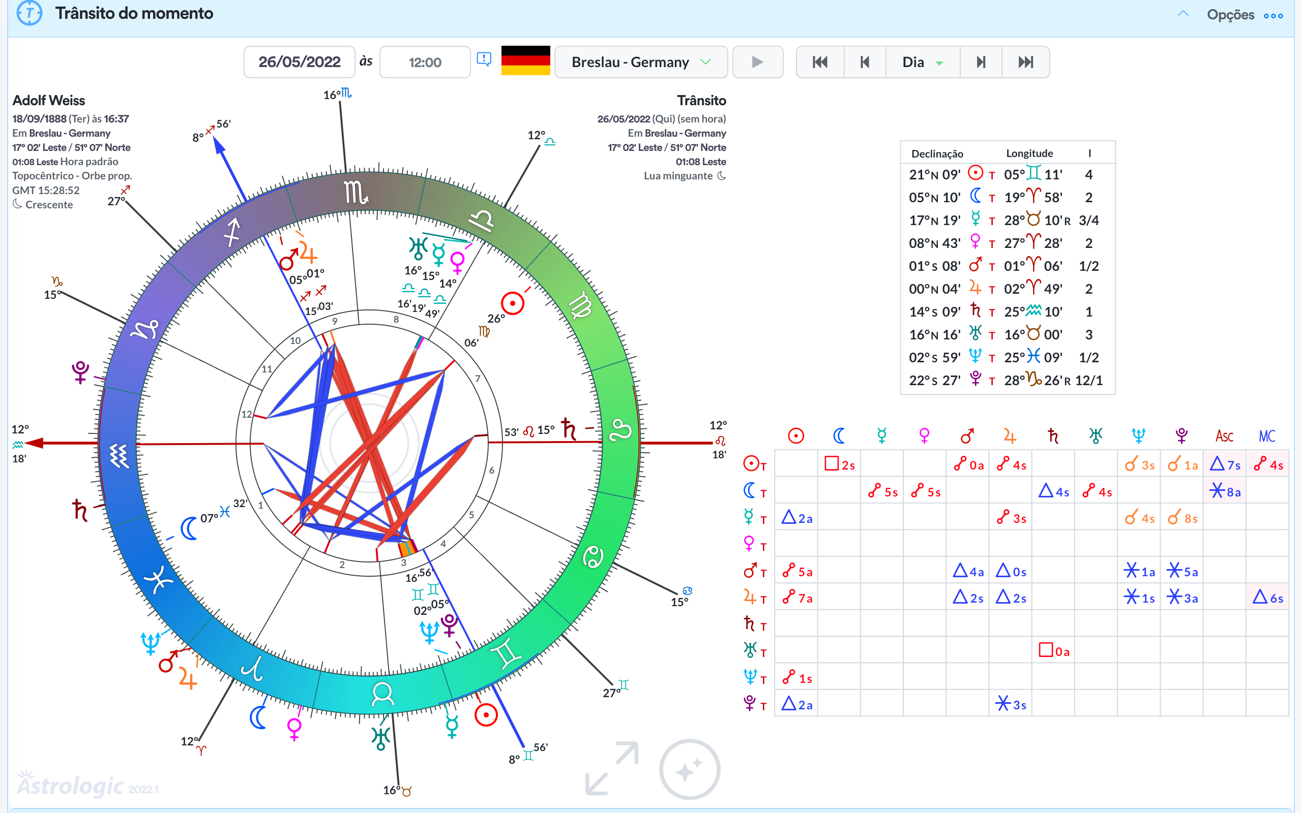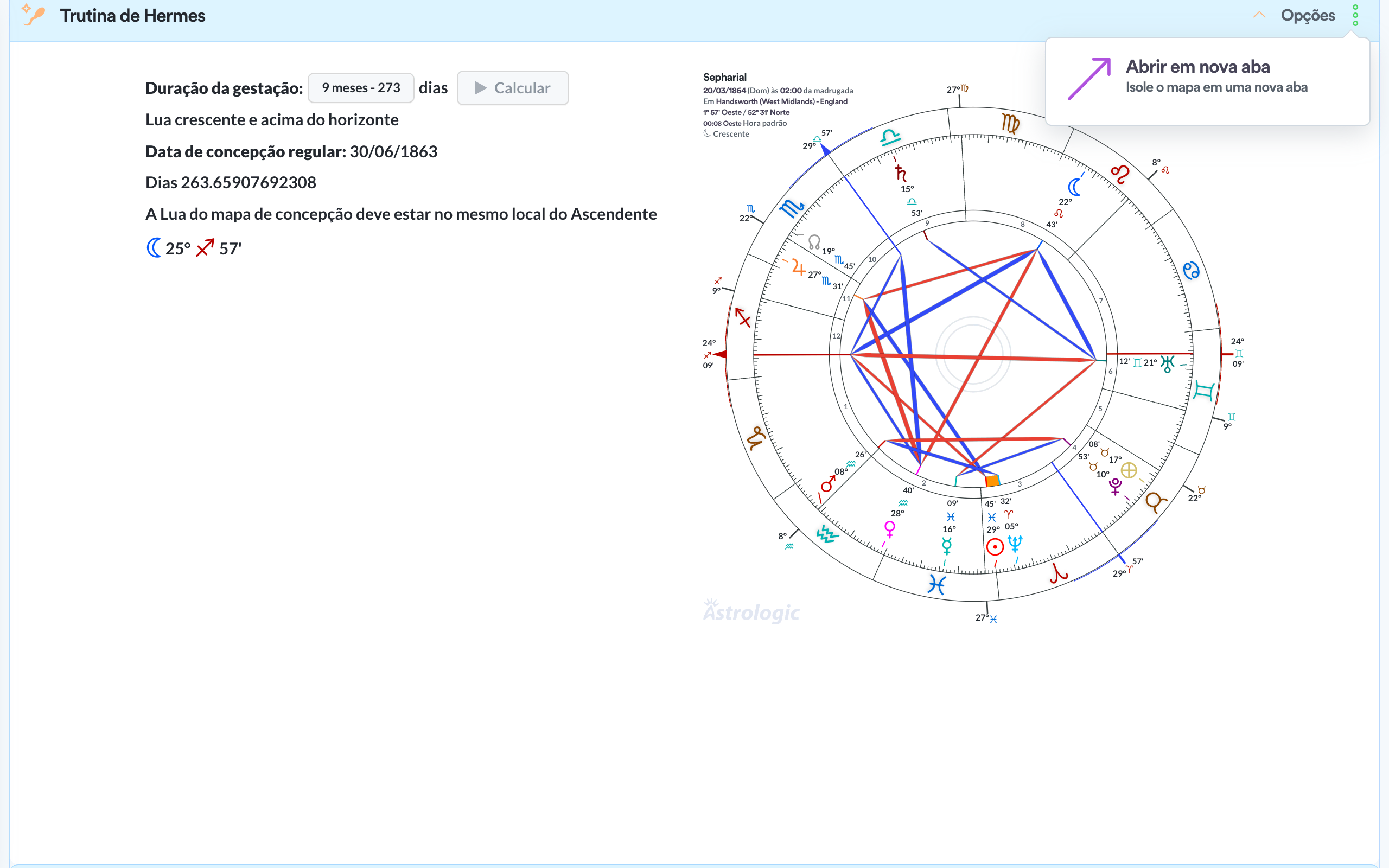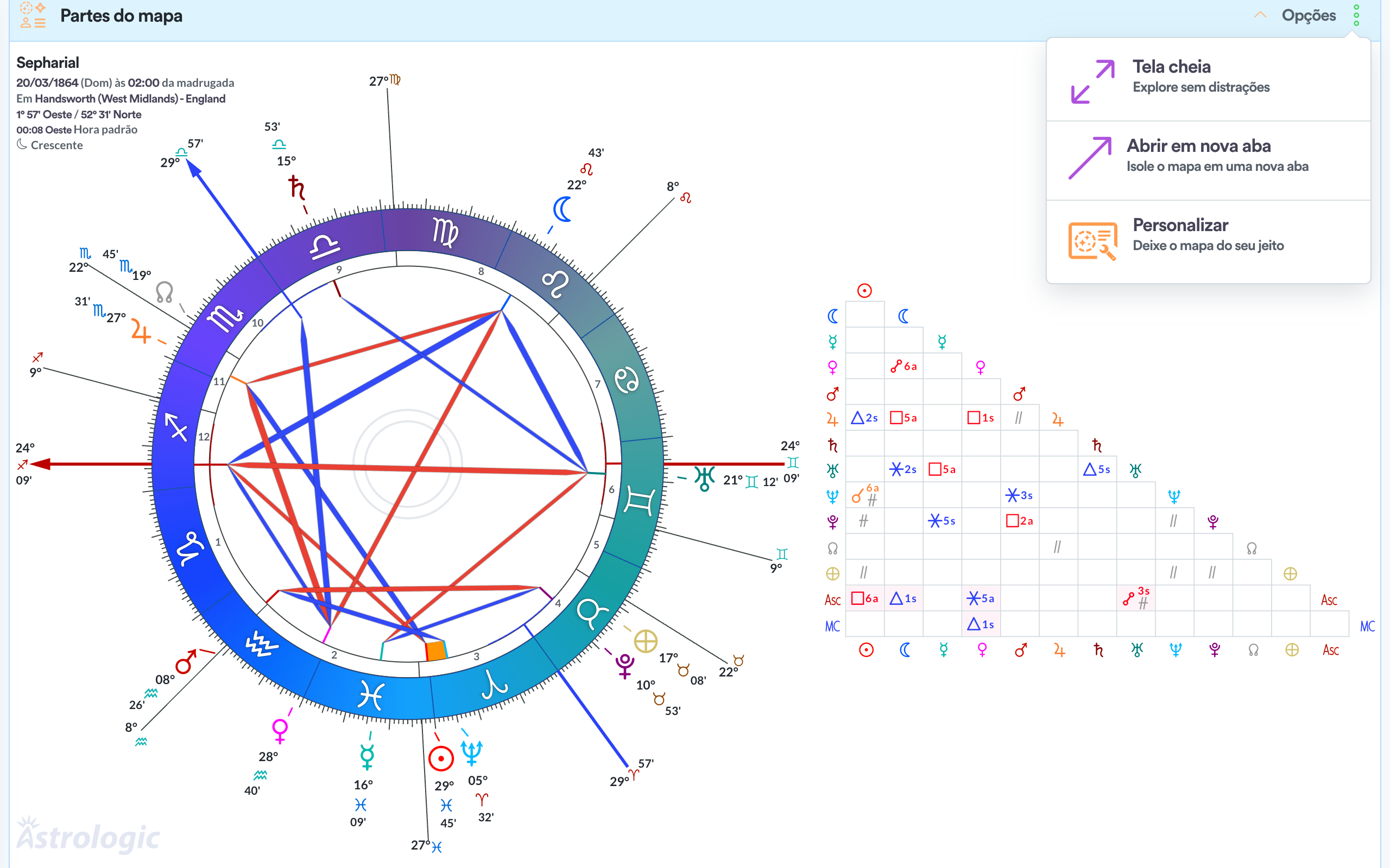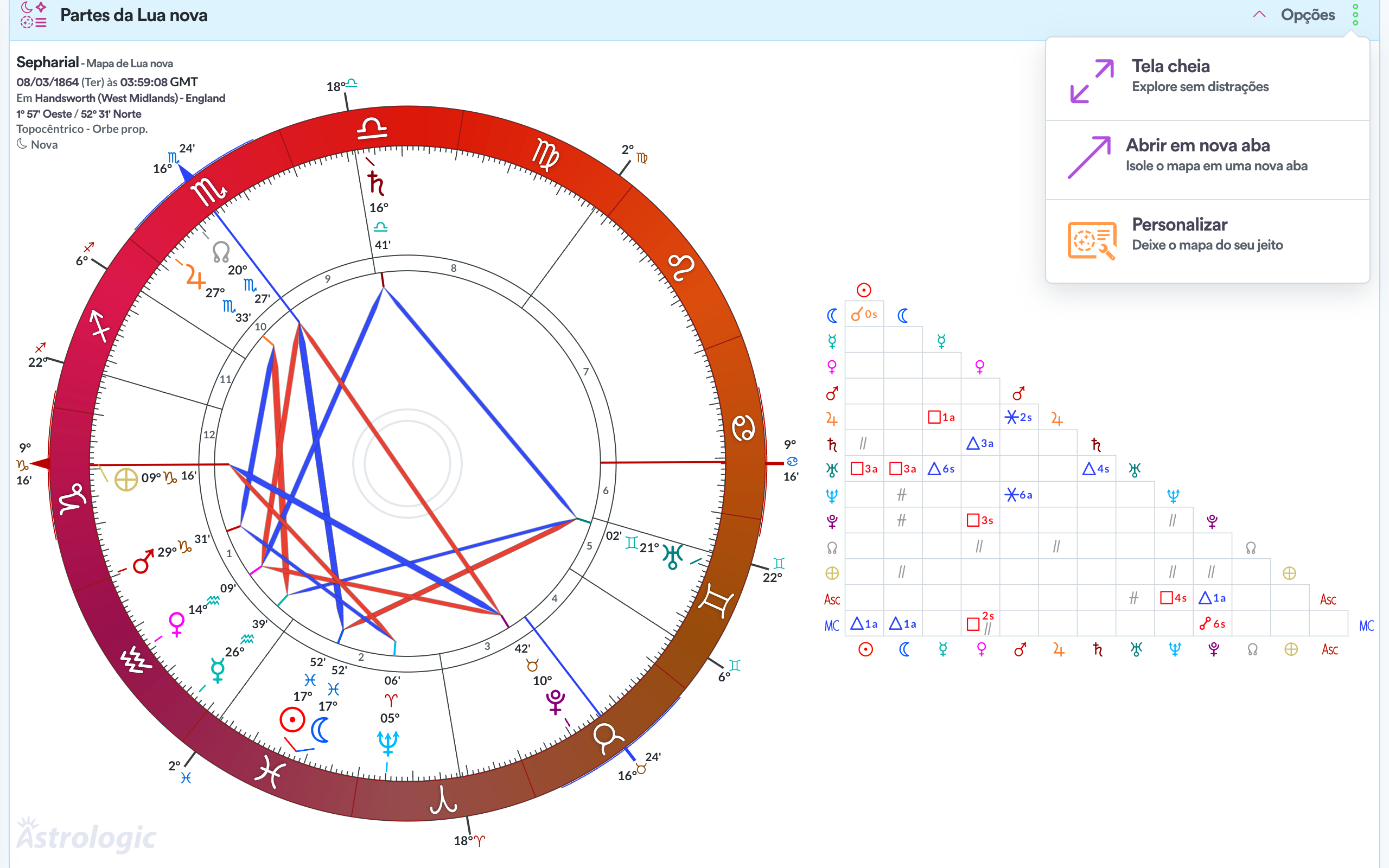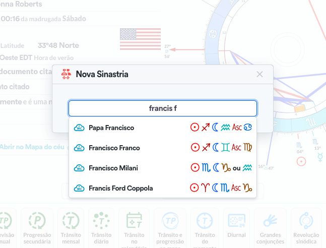 A sinastria no Astrologic é simples e direta. Um mapa em cima do outro e só.