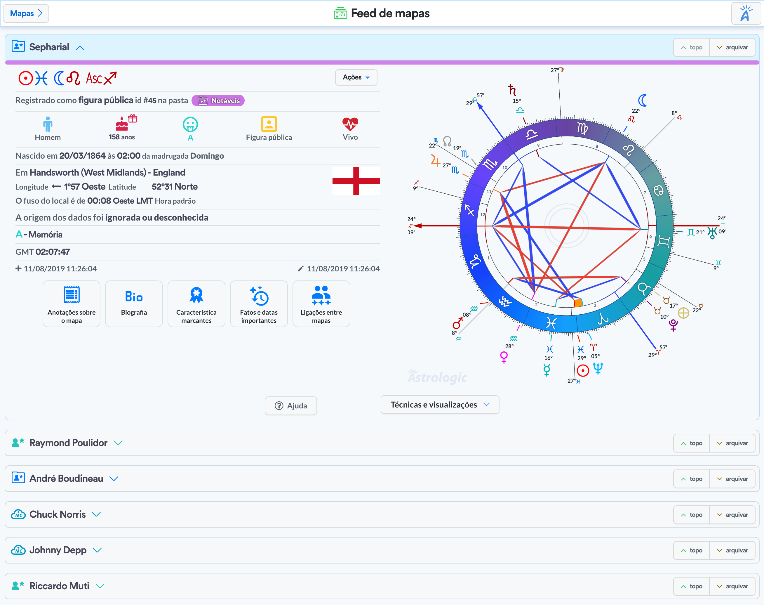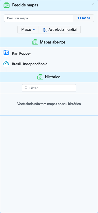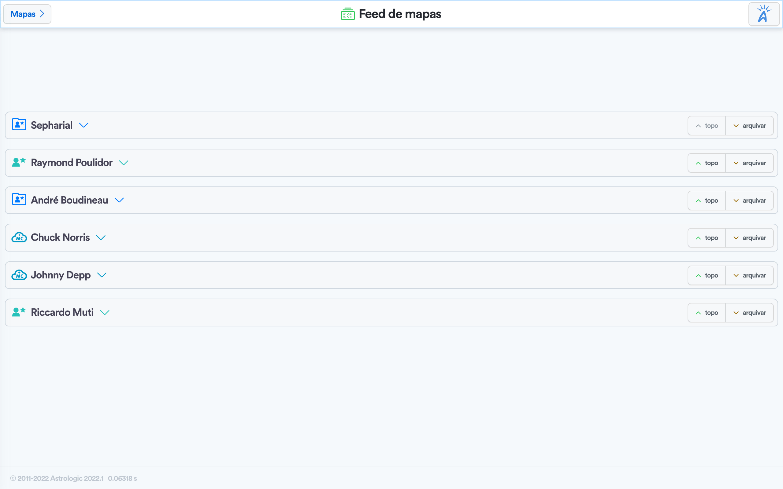 Exploração de todos os mapas do Astrologic, seja do seu arquivo de mapas ou do nosso, todos os mapas passam pelo feed.
