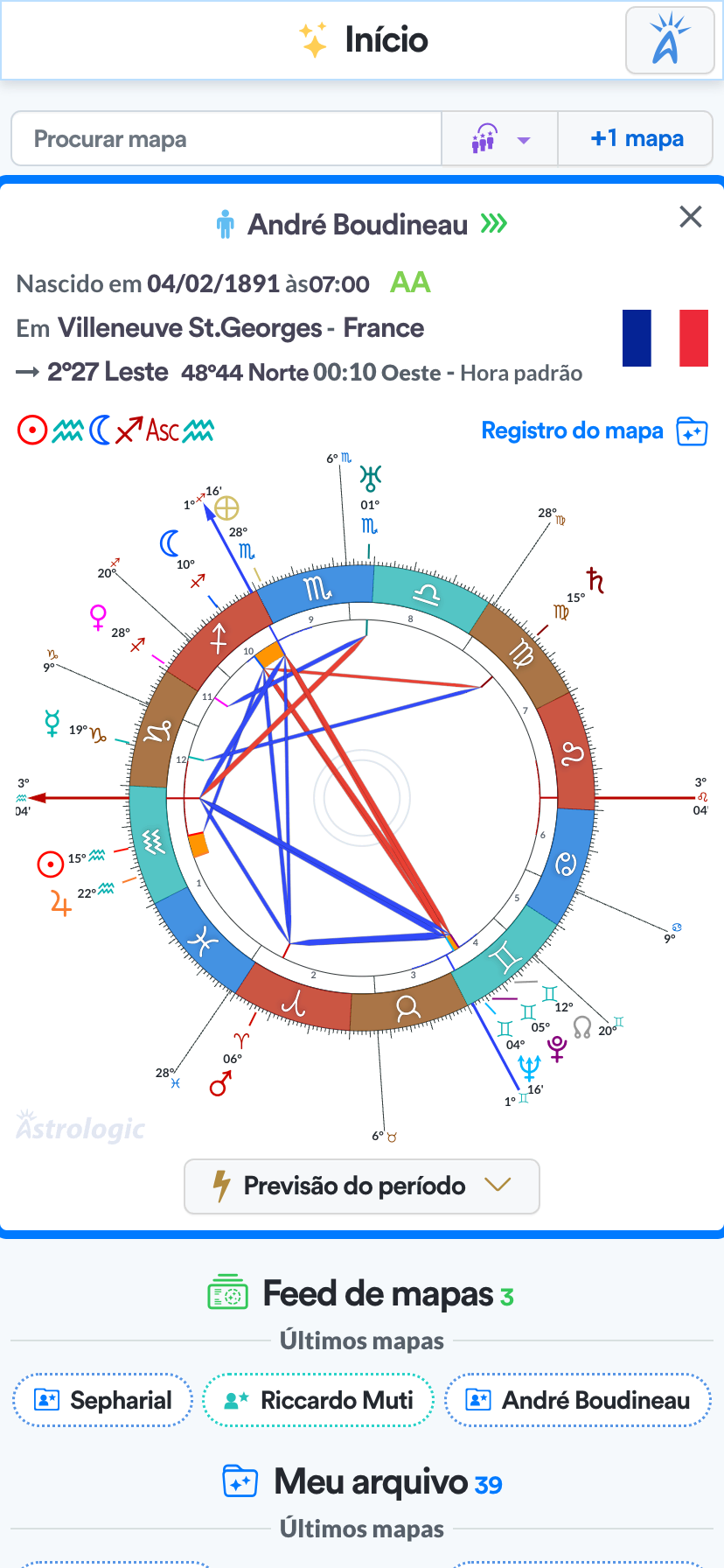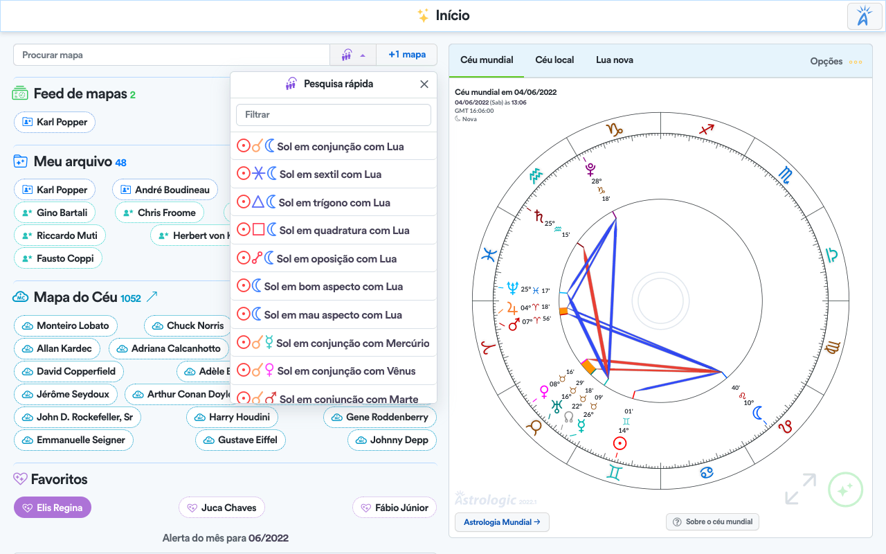 A tela de início do Astrologic tem como objetivo o acesso fácil a mapas e outros recursos mais utilizados para produtividade no dia a dia.